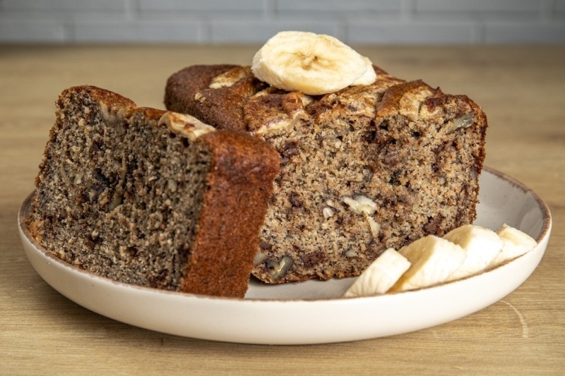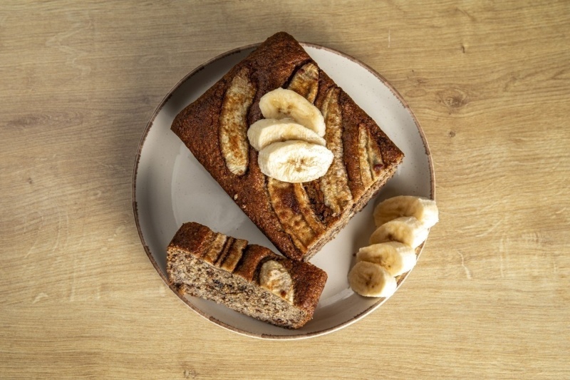 Това не е просто хляб, а прегръдка! Наситен, влажен и ароматен, нашият бананов хляб е направен с бадемово брашно, орехи и подсладен само със захар от фурми и кленов сироп. Перфектен за закуска, следобедно кафе или просто за топъл, домашен уют!