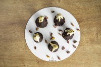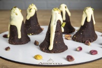 Бадемово брашно, стевия, шамфъстък, шоколад Callebaut, яйца, какао.