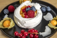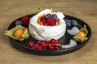 Лекота, свежест и елегантност! Нашата Павлова е като танц на небцето. Маракуя + Сметана + Меренг е една от най-добрите комбинации в света. Киселината на маракуята "отнема" сладостта на целувката. Подсладена с тръстикова захар и украсена с плодове – тя е перфектният, фин и незабравим десерт!