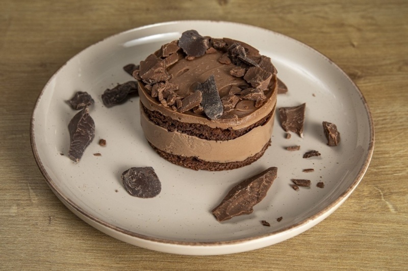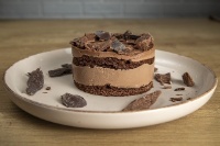 Mлечен шоколад Callebout, Бадемово брашно, какао, протеин карамел, масло, стевия и еритритол, заквасена сметана, яйца, сметана, крема сирене. Тегло за мини торта 130 гр