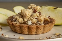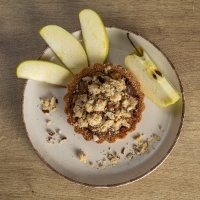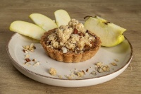 Бадемово брашно, кокосово брашно, краве масло, тръстикова захар, кленов сироп, ябълки, ванилия, канела, индийско орехче, карамфил, кардамон. Тегло за мини тарт 150 гр.