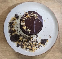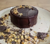 Черен шоколад , млечен шоколад Гайо, тръстикова захар, краве масло, орех, яйца. Тегло за мини торта 120 гр.