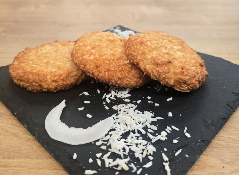 Внимание: тези сладки водят до усмивки! Нашите Кокоски са точно това, от което имаш нужда, когато ти се хапва нещо леко, златисто и невероятно ароматно. Направени само с няколко истински съставки, те са перфектната компания за сутрешния чай или за моментите „просто така“. Една хапка и вече си под палмите!